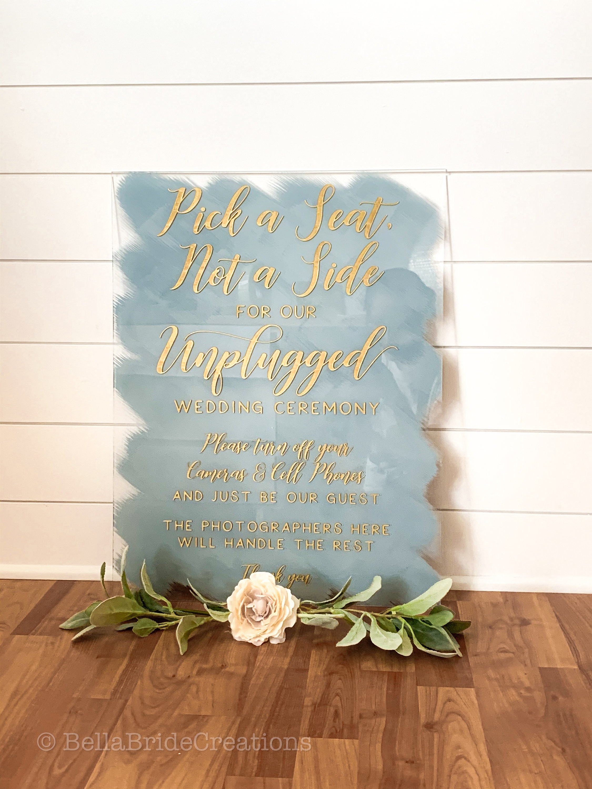 Politely request that your guests keep your ceremony phone-free with an unplugged wedding ceremony sign. Use this sign to tell guests that you request they dont use any. Our acrylic signatures are unqiue and can be.